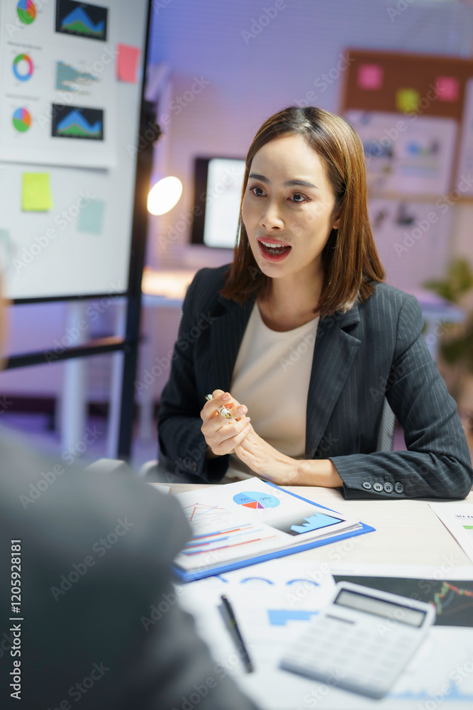 Businesswoman explaining financial charts to colleague during a meeting in the office