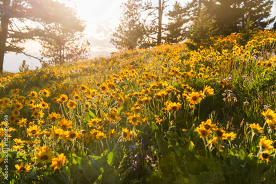 Field Of Wildflowers At Sunset