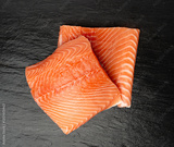 Fresh Salmon Fillet, Raw Norwegian Red Fish, Trout Meat Piece, Fresh Atlantic Salmon Fillet on Black