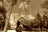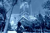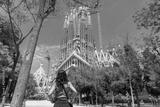 Tourist admiring sagrada familia basilica in barcelona, spain