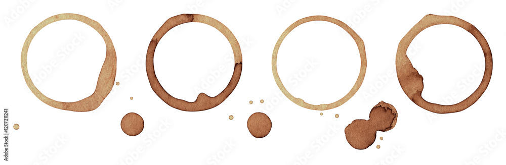 coffee stains, rings, splatters, stains on transparent background, isolated, extracted, png file