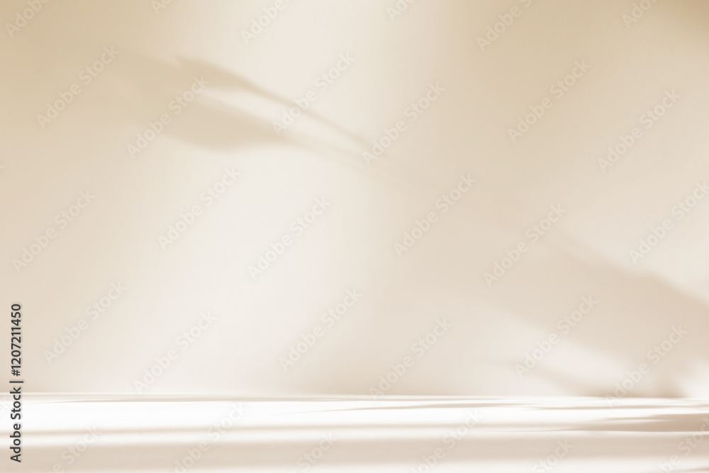 Abstract beige color gradient studio background for product presentation. Empty room with shadows of flowers and plant leaves. 3d ivory room with copy space. Summer concept. Blurred backdrop