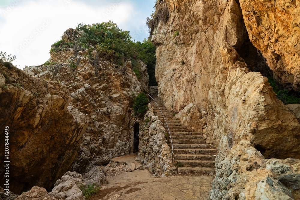 Popular hiking trail in the south of France on Cap d'Antibes.