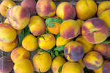 Freshly harvested organic peaches in container in vegetable-fruit market