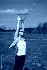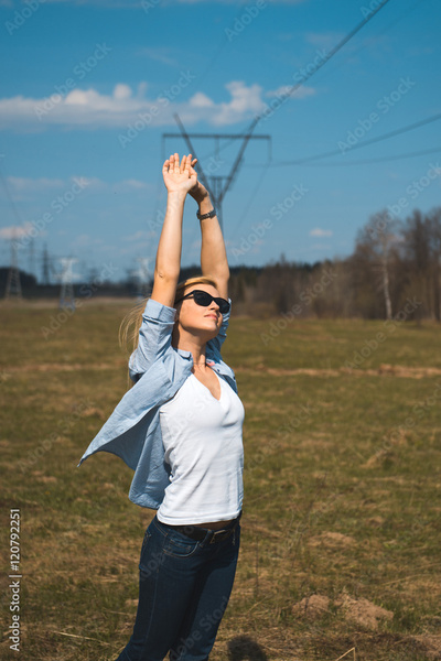 the girl raised her hands up