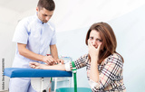 Doctor makes the patient an injection of a young woman.young girl afraid of injection
