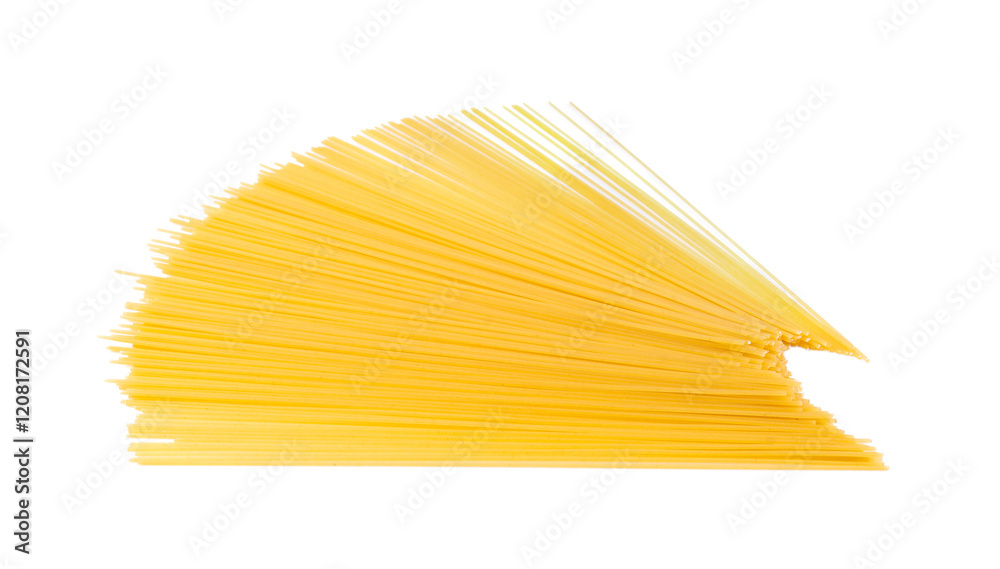 Raw spaghetti isolated, dry spagetti, long wheat noodles, uncooked italian macaroni bundle