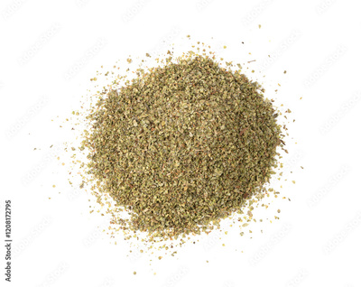 Dry thyme isolated, dried marjoram, oregano pile, ground crushed thyme seasoning, thyme leaves
