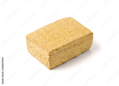 Tofu Cheese Isolated, Smoked Vegan Cheese Slice, Sliced Soya Bean Curd, Soy Protein or TSP
