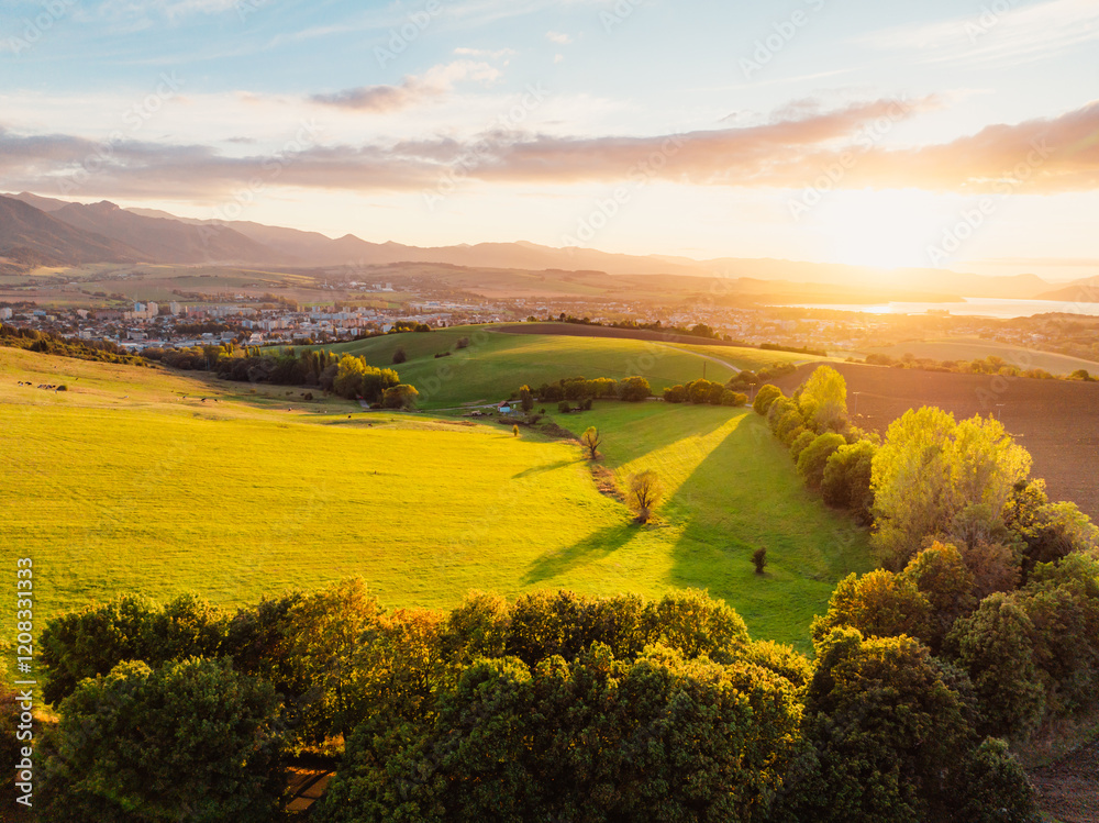 Sunset over Liptov region with Liptovska Mara lake and Tatras mountains around. Liptovsky mikulas landspace, slovakia.