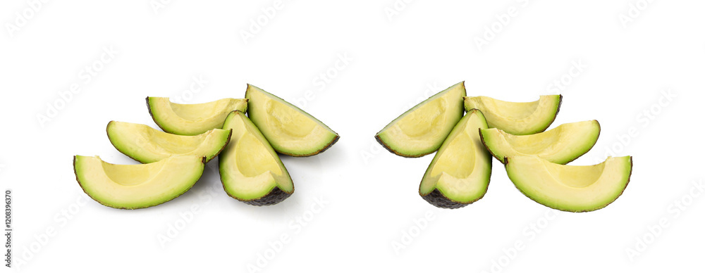 Hass Avocado Half Isolated, Whole Sharwil Set, Brown Avocados Slice, Fresh Alligator Pear, Persea Americana