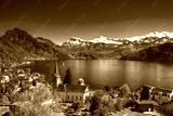 Village Weggis, lake Lucerne (Vierwaldstattersee), Pilatus mountain and Swiss Alps in the background near famous Lucerne (Luzern) city, Switzerland