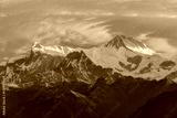Beautifull cloudy sunrise in the mountains with snow ridge