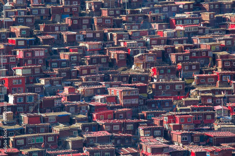 Top view monastery at Larung gar (Buddhist Academy), Sichuan, China