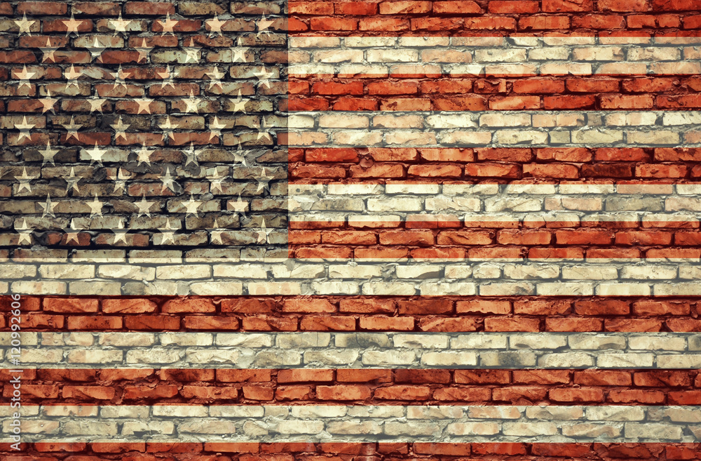 American flag on the brick wall