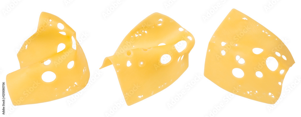 Square slices of processed cheese with holes. burger cheese slices isolated on white background