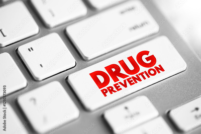 Drug Prevention - process that attempts to prevent the onset of substance use, text concept button on keyboard