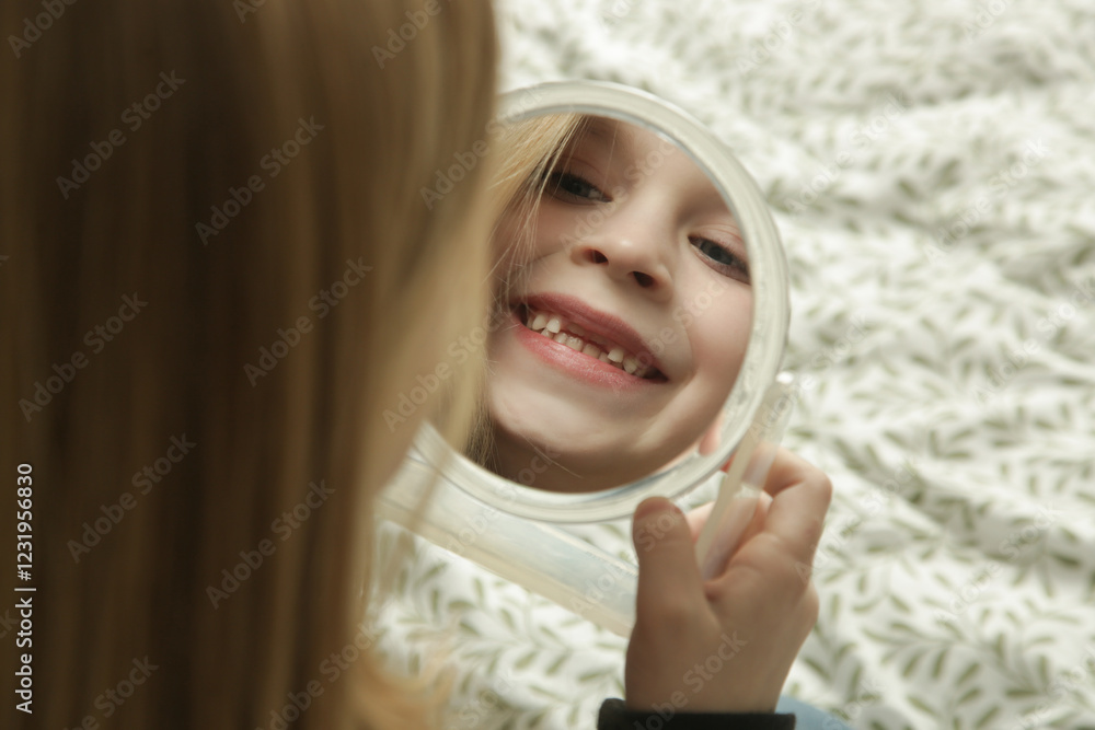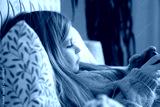 Cute little girl using smartphone at home
