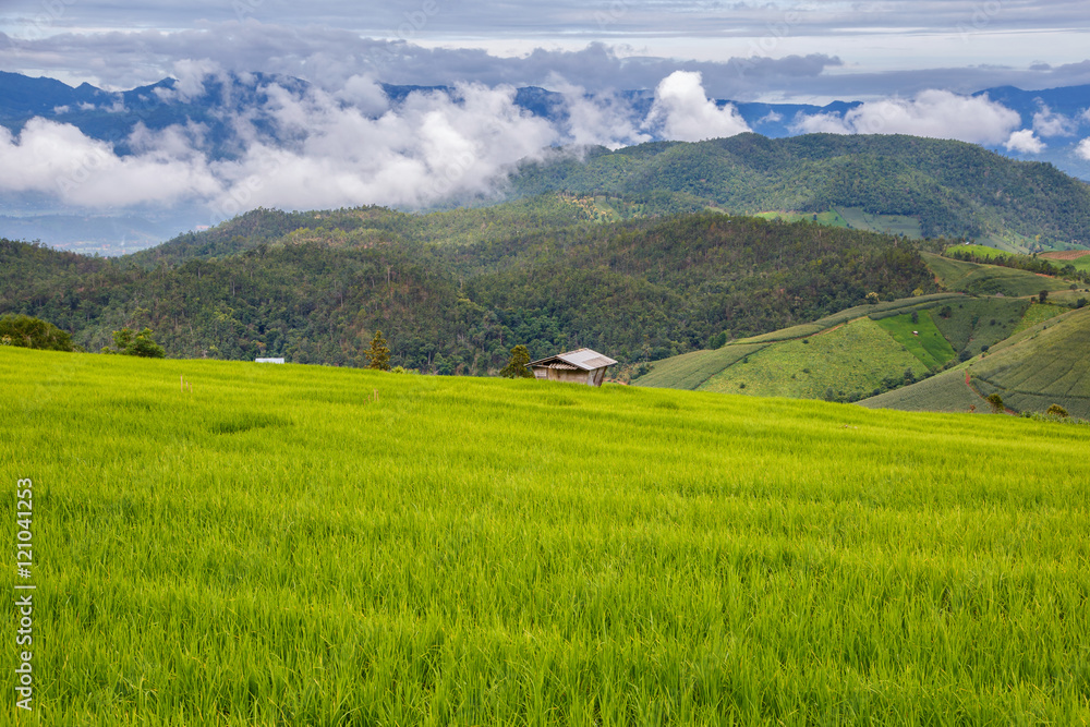 Green Terraced Rice Field in Pa Pong Pieng , Mae Chaem, Chiang Mai, Thailand