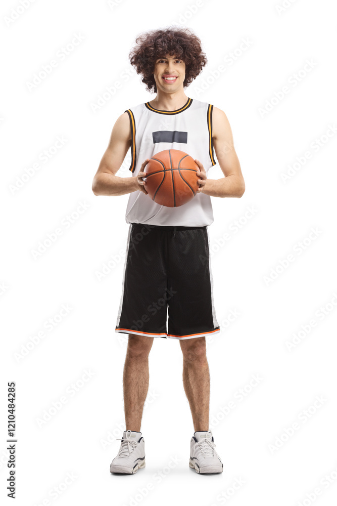 Full length portrait of a young male basketball player holding a ball