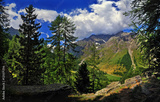 Beautiful sky with clouds and Mountains of Aosta valley Alps Italy.