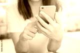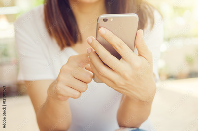 Close up of women's hands holding cell telephone, hipster girl watching video on mobile phone.