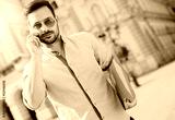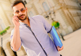Portrait of young man in the city / Young man walking and speaking on the telephone in the center of the city
