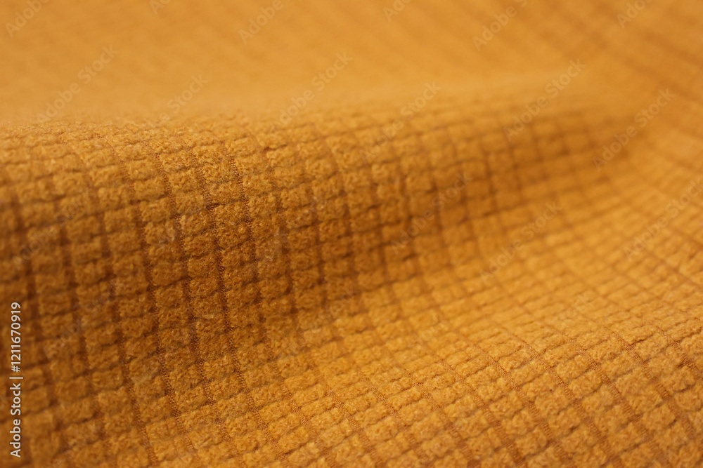 Orange fleece fabric is part of a garment, part of a raincoat made of beige material with a short pile