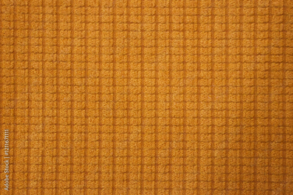 Orange fleece fabric is part of a garment, part of a raincoat made of beige material with a short pile