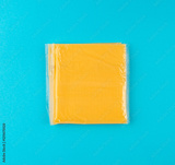 American cheese, processed cheese slice, wrapped thin yellow cheddar in a plastic package