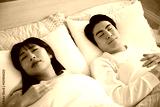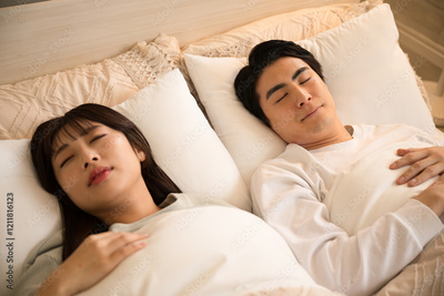 間接照明の部屋で寝るカップル 睡眠や熟睡などのイメージのクローズアップ