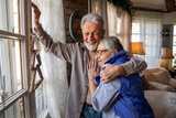 Elderly couple in love. Senior husband and wife hugging and bonding with true emotions