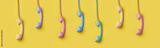 Creative layout with retro phone handsets pastel colors on yellow background.