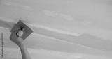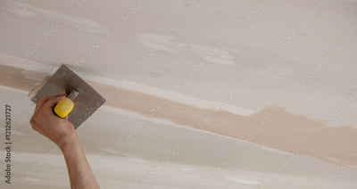 man plastering ceiling, repair. Selective focus