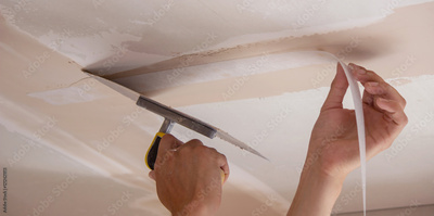 man plastering ceiling, repair. Selective focus