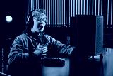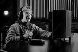 Youngster Engaged in Podcast Recording with Microphone Setup