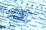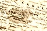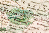 World map. Romania on the geographical map, world tourism, destination. Political map close-up photo.