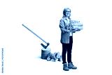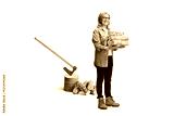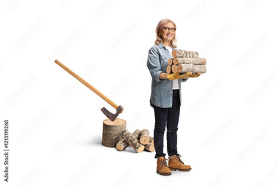 Smiling woman holding a pile of chopped timber wood