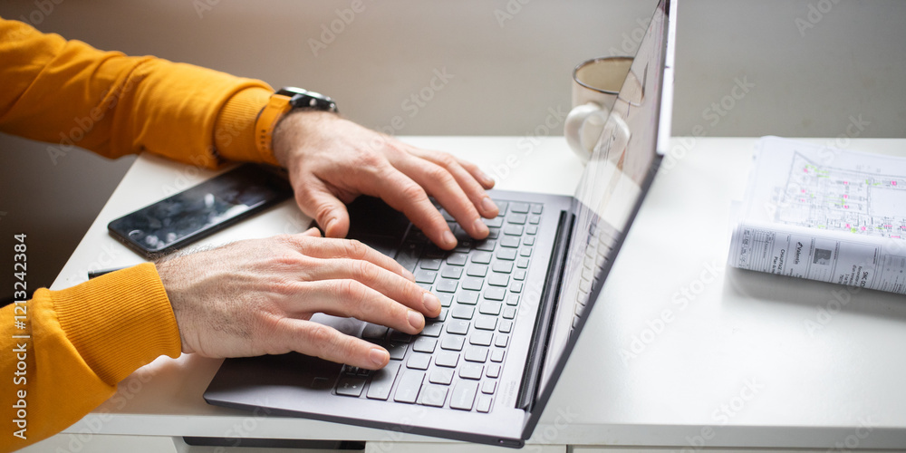 hands working on a laptop