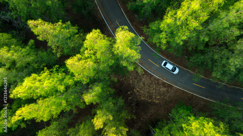 aerial view of dark green forest Abundant natural ecosystems of rainforest. Concept of nature forest preservation and reforestation.