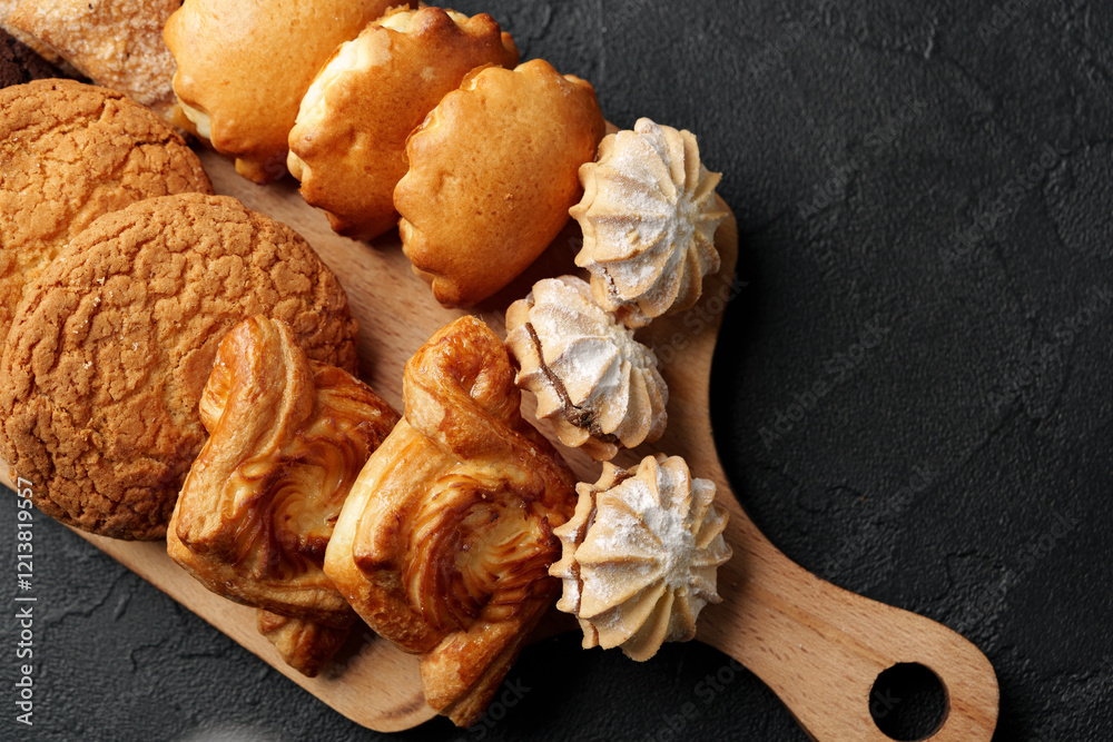 Charming assortment of baked treats served on a wooden board in cozy setting