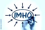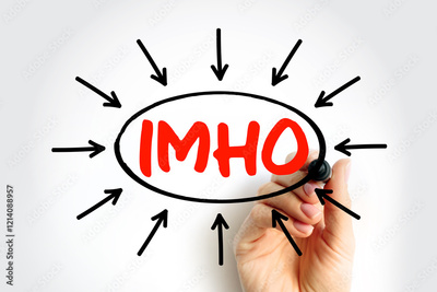 IMHO In My Humble Opinion - used for expressing your opinion about something, acronym text with arrows