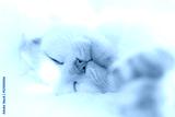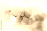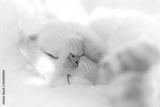 White cat takes a nap on the bed in sunny day. Shallow DOF.