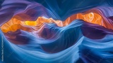 Abstract fluid art with vibrant orange and deep blue waves creating dynamic motion, perfect for modern interior design, business presentations or creative backgrounds.
