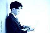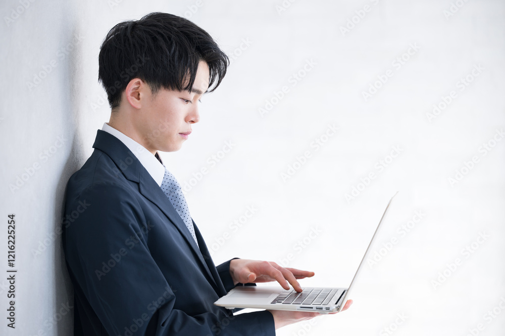 パソコンを持つ若い男性 新入社員などのイメージ 横顔