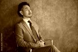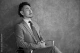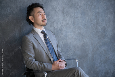 椅子に座って見上げるスーツを着たビジネスマン 成功や目標のイメージ
