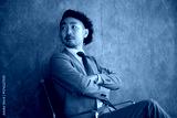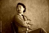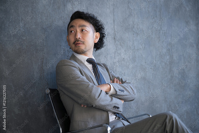 Businessman in a suit looking up turning around in a chair Image of success and goals