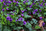 Close-up of purple Common or english Violets in the garden. Viola odorata plants on springtime