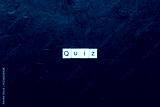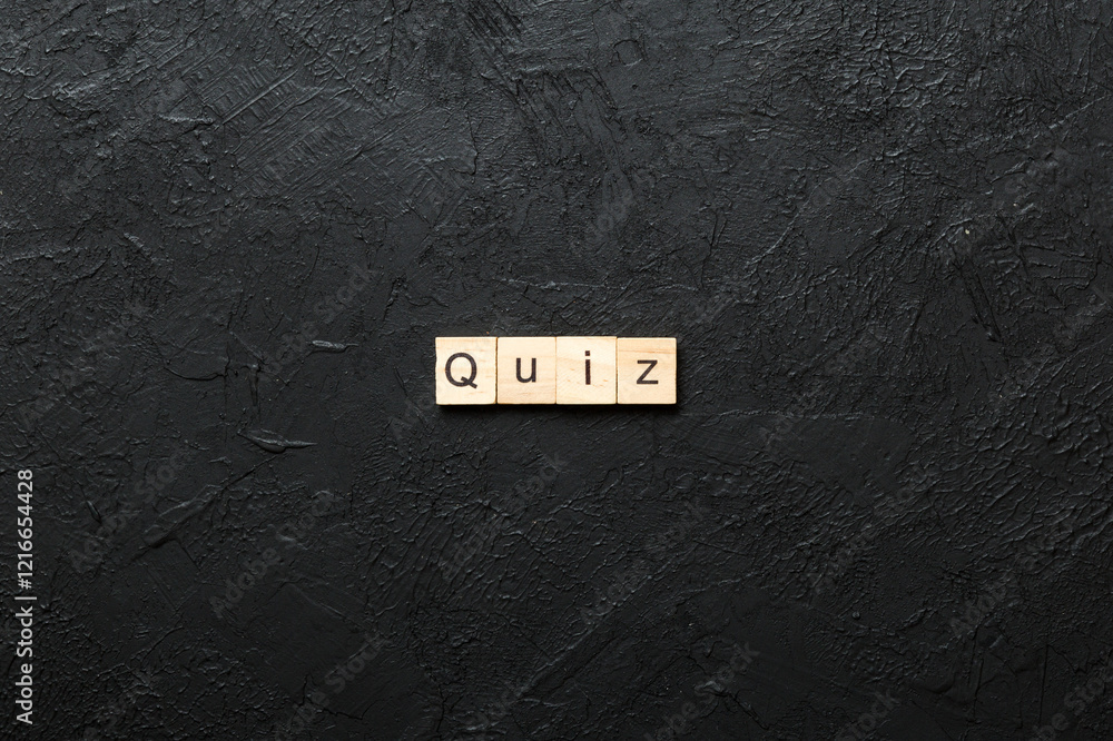 Quiz word written on wood block. Quiz text on cement table for your desing, Top view concept