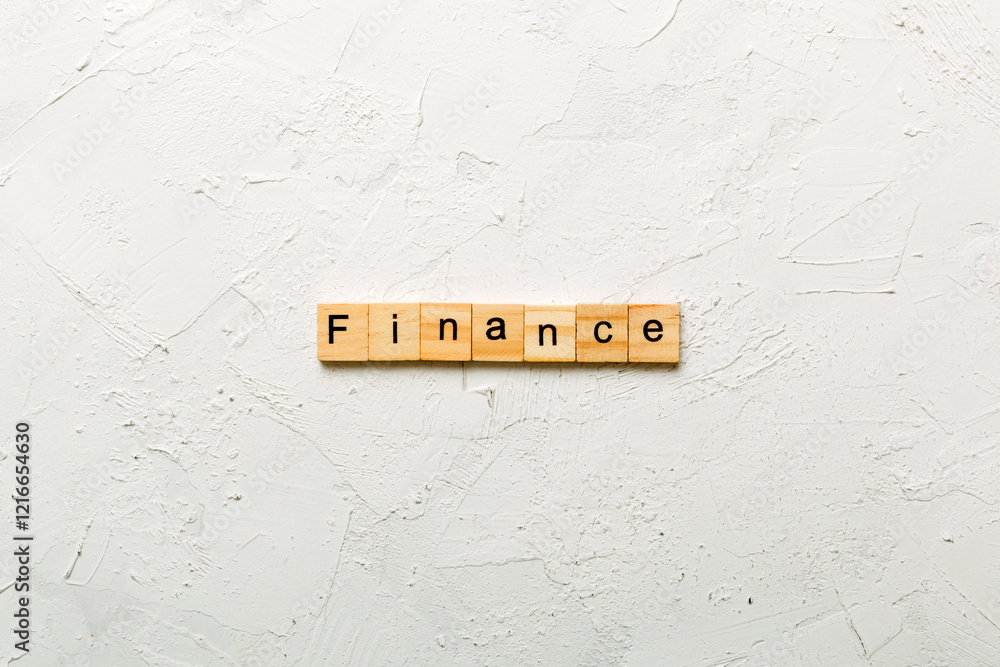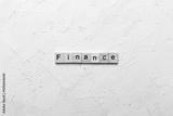 FINANCE word written on wood block. FINANCE text on cement table for your desing, concept
